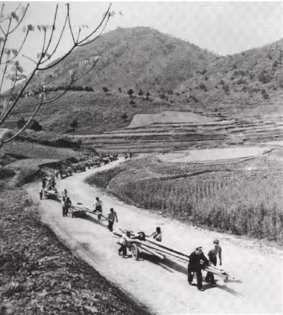 当时的遵义,到处都是山坡和碎石小路。为..三线建设尽快“上马”,遵义地区专署和原遵义市、遵义县、绥阳县、桐梓县政府迅速组建支援三线建设..小组,对辖区内因“三年自然灾害”影响而停缓建的项目、关闭的厂房、闲置的学校、可以利用的楼堂馆所等建筑物,以及可以利用的闲置土地等进行登记造册,供三线建设单位选用。