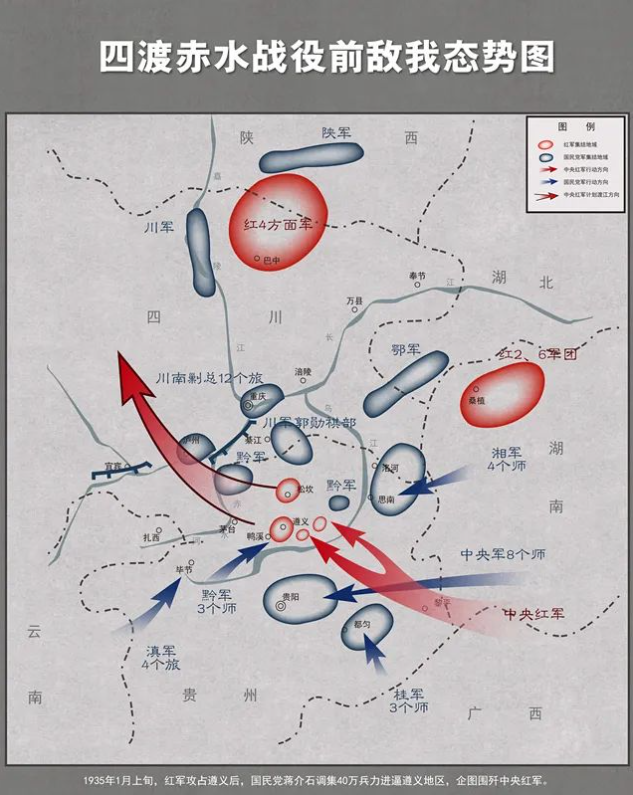四渡赤水战役前敌我态势图(图片来源于网络)